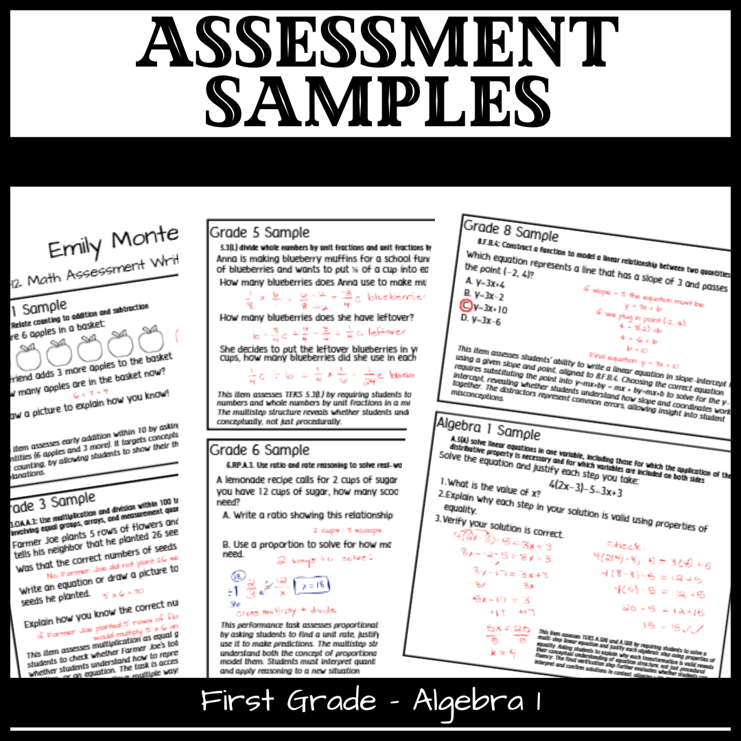 My assessment samples reflect my commitment to designing math tasks that are clear, meaningful, and accessible for all learners. Across grades 1 through Algebra 1, each item is crafted to reveal student thinking—not just whether they can perform a procedure. I design assessments that invite reasoning, illuminate misconceptions, and help students feel capable as they grow. These pieces also demonstrate my ability to align tasks to standards, write clear rationales, integrate error analysis, and build assessments that support learning as much as they measure it.